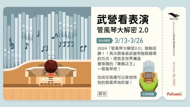 Weiwuying has joined forces with the PaGamO online learning platform to introduce the "Weiwuying Power-up" series. This series includes engaging quizzes designed to help you explore Weiwuying's venue architecture, performance theaters, and even uncover the secrets of Asia's largest pipe organ. Let's all come together and become the best audience we can be!