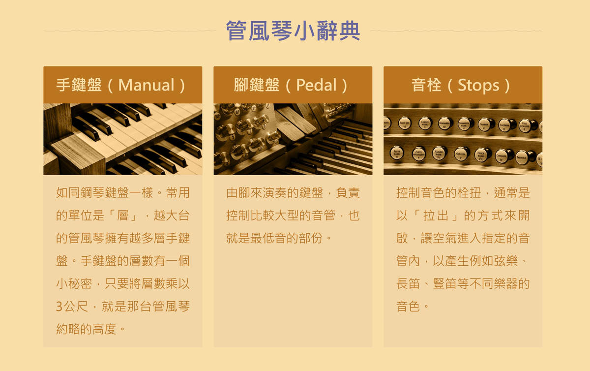 As missionaries brought their faith out of Europe, the organ followed to churches all over the world—over 30 can be found in Taiwanese churches. Now that Western classical music is a popular genre, almost all concert halls are built with an organ, allowing people all over to hear the grandeur of this fascinating instrument.