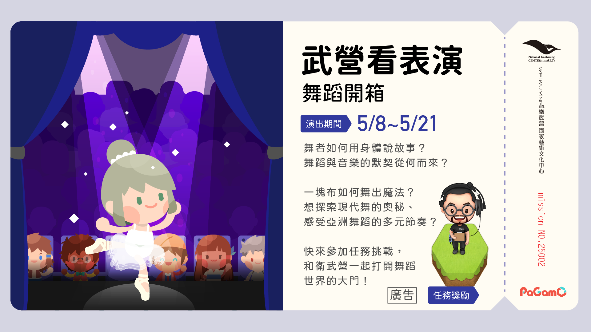 Did you know simple actions such as walking or waving your hand can become a powerful language on stage? Come on over to the PaGamO platform to take on some fun challenges! You'll play games and unbox fantastic dance knowledge at the same time!